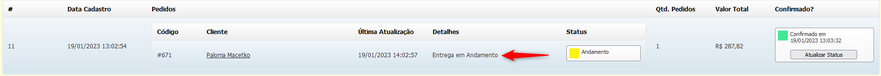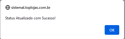 Após o Status ser atualizado, um alerta será exibido: