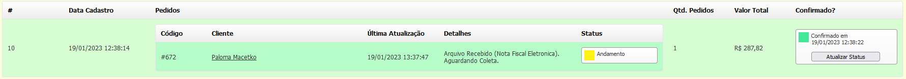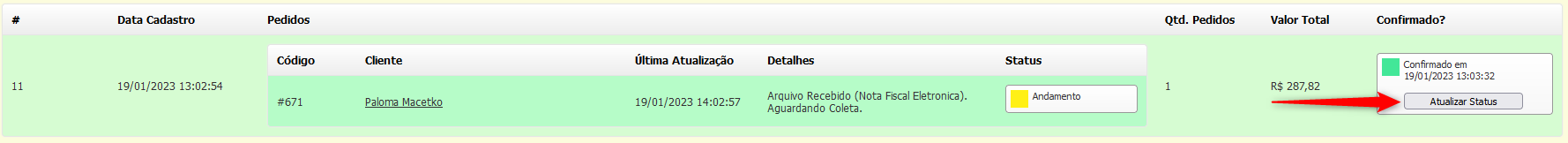 Para isto, clique em "**Atualizar Status**":