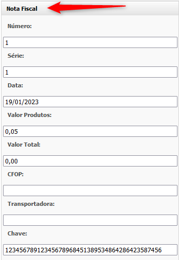 É necessário que o pedido tenha **Nota Fiscal**, caso você ainda não tenha preenchido os dados, mova a janela até a área de "**Nota Fiscal**":