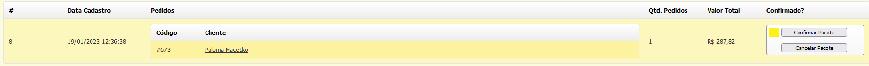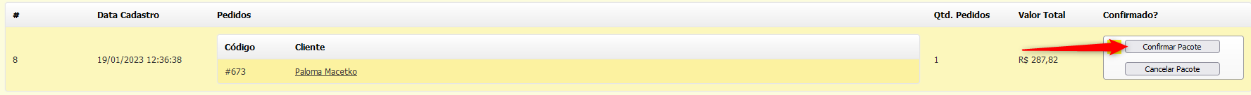 Após os pedidos serem adicionado no Pacote, é necessário **CONFIRMAR** o envio.