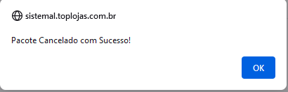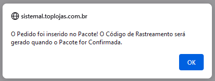 Será exibido uma mensagem indicando que este Pedido foi adicionado no Pacote com "**SUCESSO**":