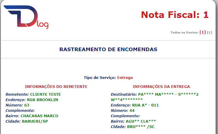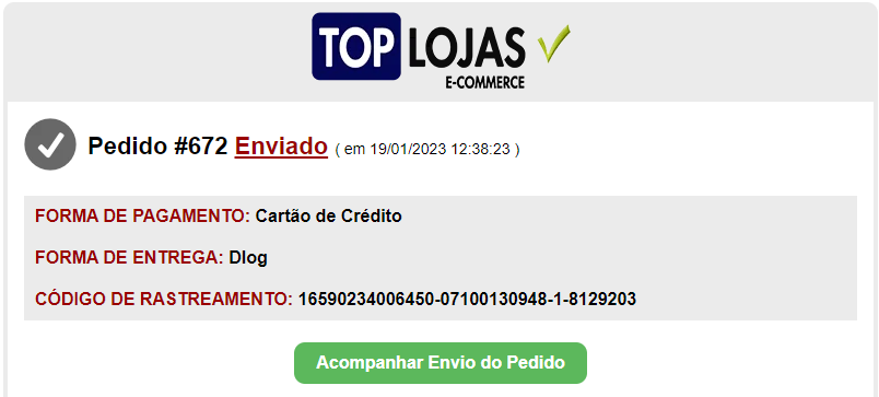 Nesta etapa, o cliente também recebe um e-mail com o código de rastreamento e um link para **acompanhar o envio**: