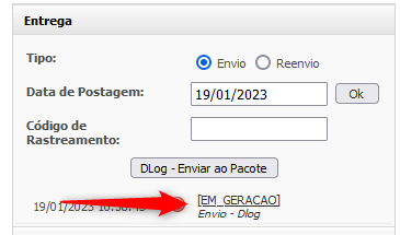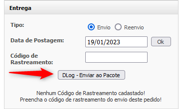 Após todos os pedidos serem adicionados ao Pacote, é feito a **Confirmação do Envio**, neste processo, todos os pedidos do Pacote são enviados para a **DLog** e o **Link de Rastreamento** é gerado.