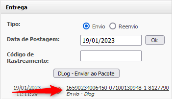 Após o Pacote ser confirmado o sistema **atualiza o código de rastreamento** com o código retornado pela DLog:&#x20;