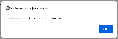 Será exibido um alerta indicando que as configurações foram aplicadas com sucesso: