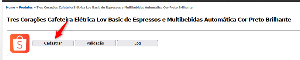 Clique em "**Cadastrar**" na seção "**Shopee**":