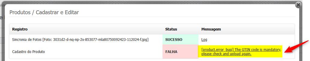 ### 🔷 Estou tentando sincronizar um anúncio, mas está gerando um Erro